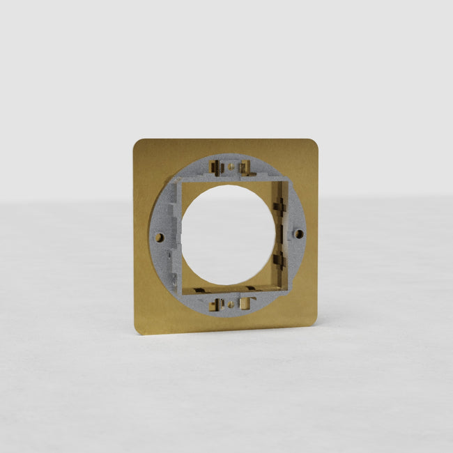 This Kew single socket plate in antique brass works with any one of our round socket modules.