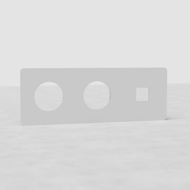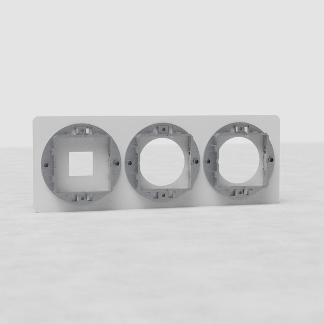 This Kew paintable triple 1x keystone and 2x socket plate works with any one of our 20mm keystone modules and any two of our round socket modules.