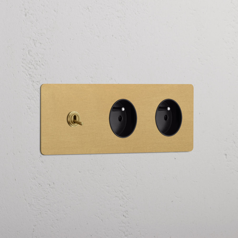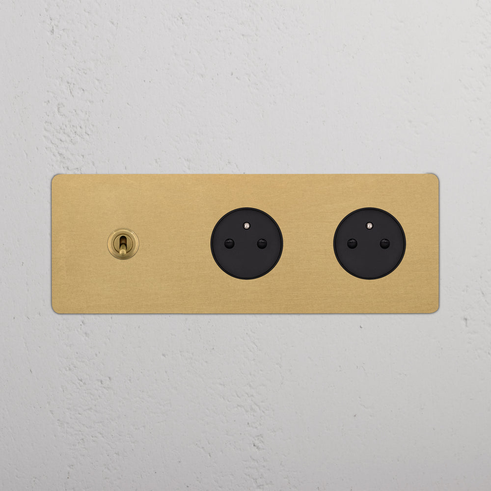 This triple mixed switch and socket combines a two-way toggle switch and two French/Belgian sockets on one plate.