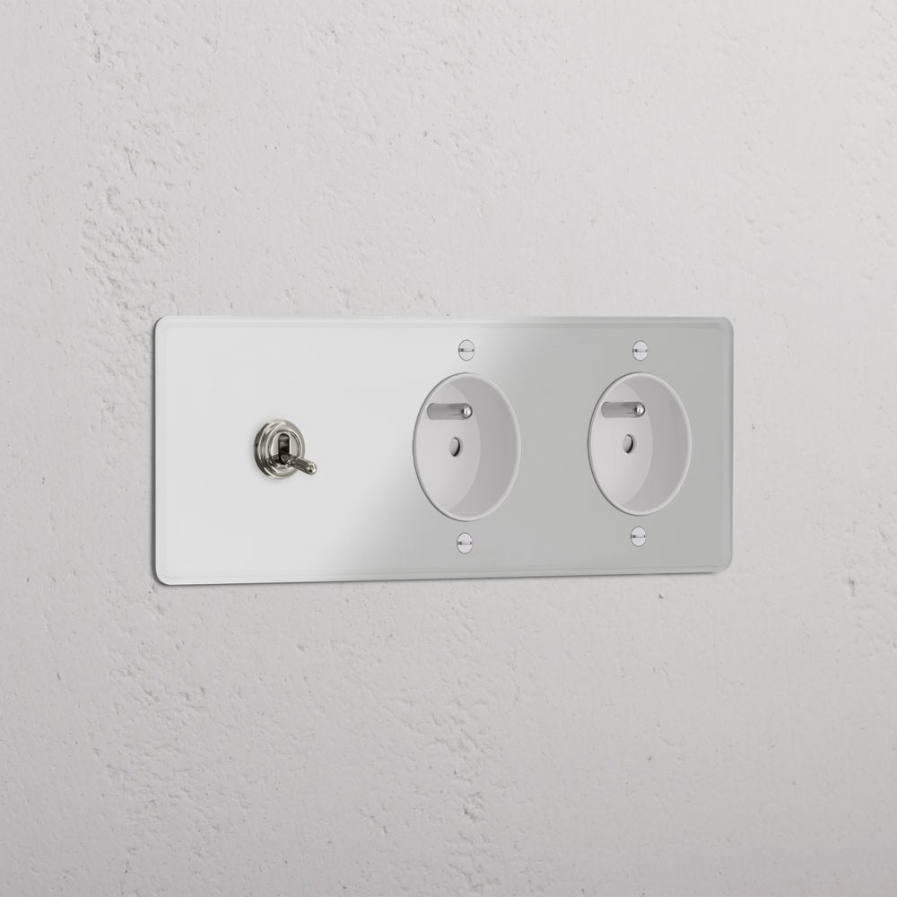 This triple mixed switch and socket combines a two-way toggle switch and two French/Belgian sockets on one plate.