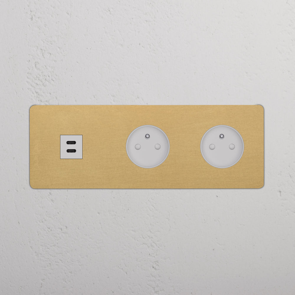 This triple mixed socket combines a USB-C and two French/Belgian sockets on one plate.