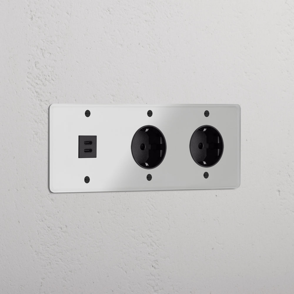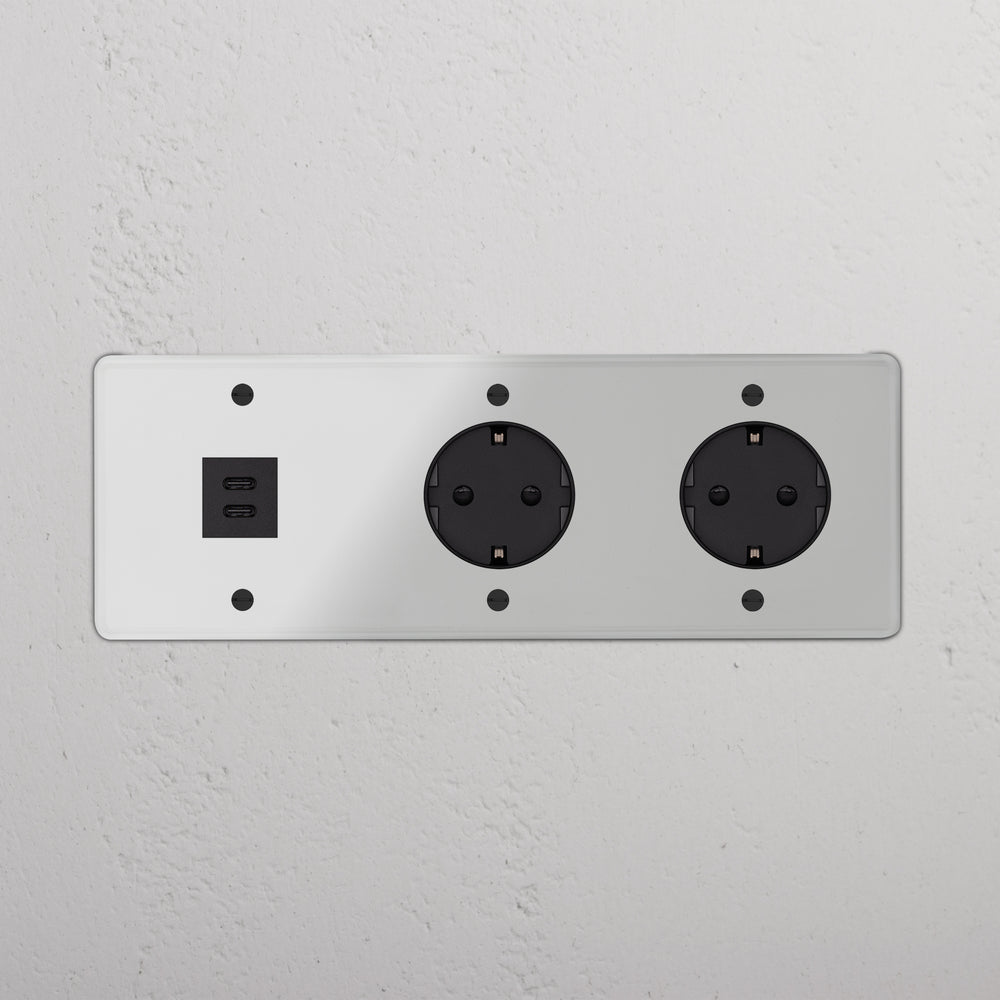 This triple mixed socket combines a USB-C and two Schuko sockets on one plate.