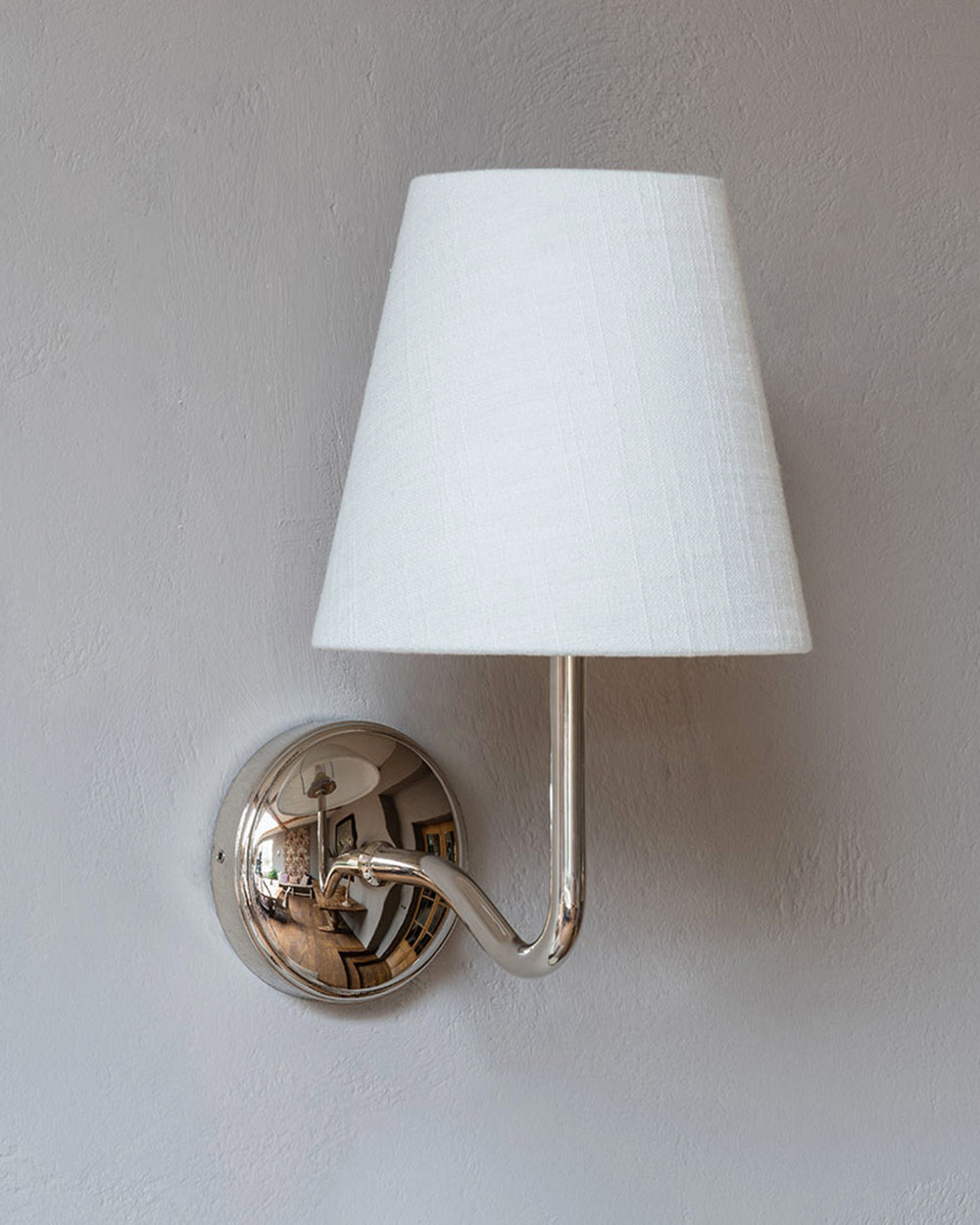Our medium-sized take on the traditional swan neck wall light is scaled up, but still perfectly proportioned. It’ll have a greater presence in bigger or high-ceilinged rooms.