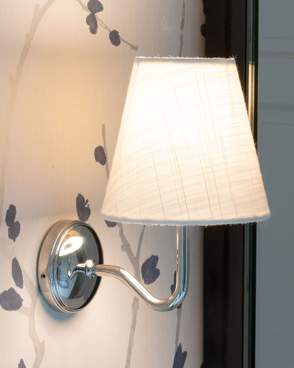 Polished nickel is our answer to chrome. It’s a bit warmer, which we think is more versatile, so you can use it with warm or cool colour palettes. The Alabaster White shade gives a clean and crisp look.