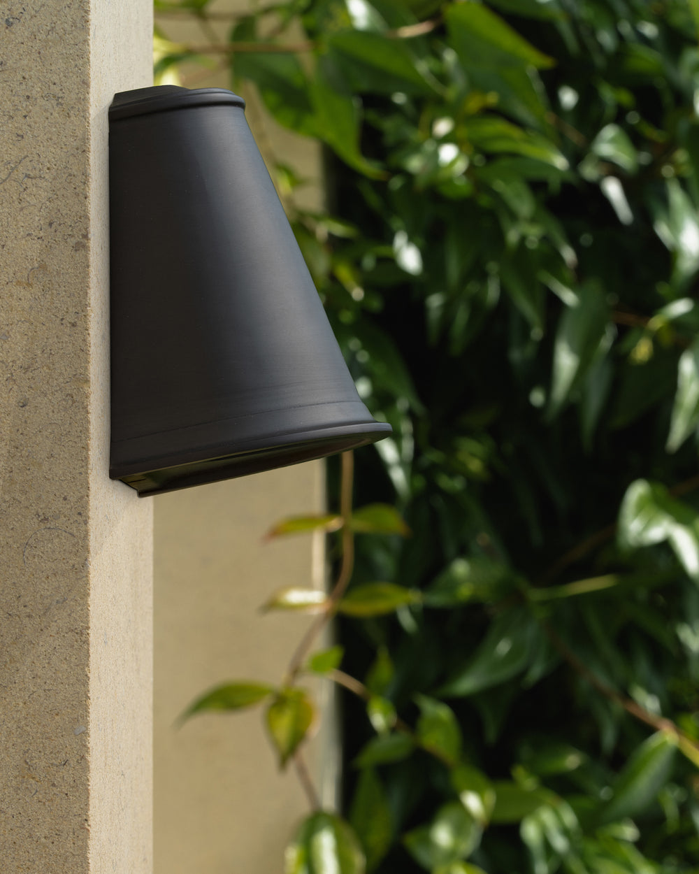 It provides a wash of directional, downward-facing light. We’ve angled the bulb slightly, so it’s suitable for lighting paths as well as exterior walls.