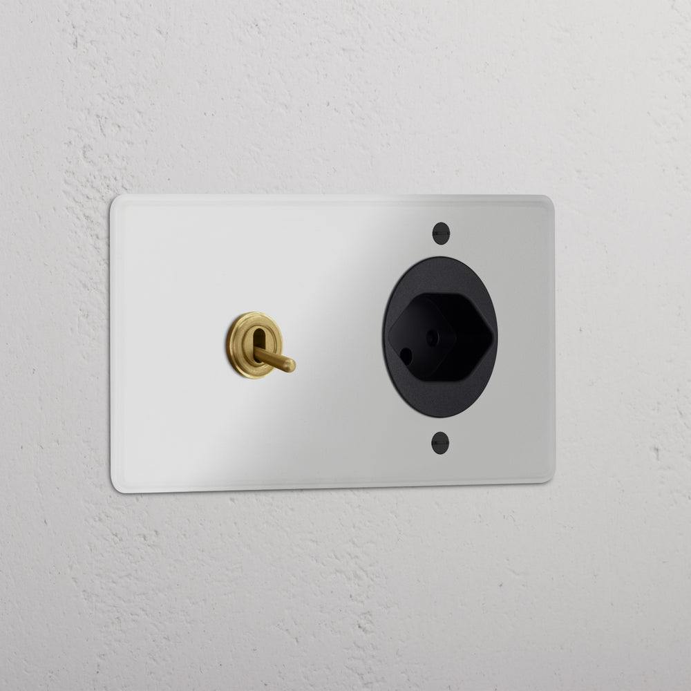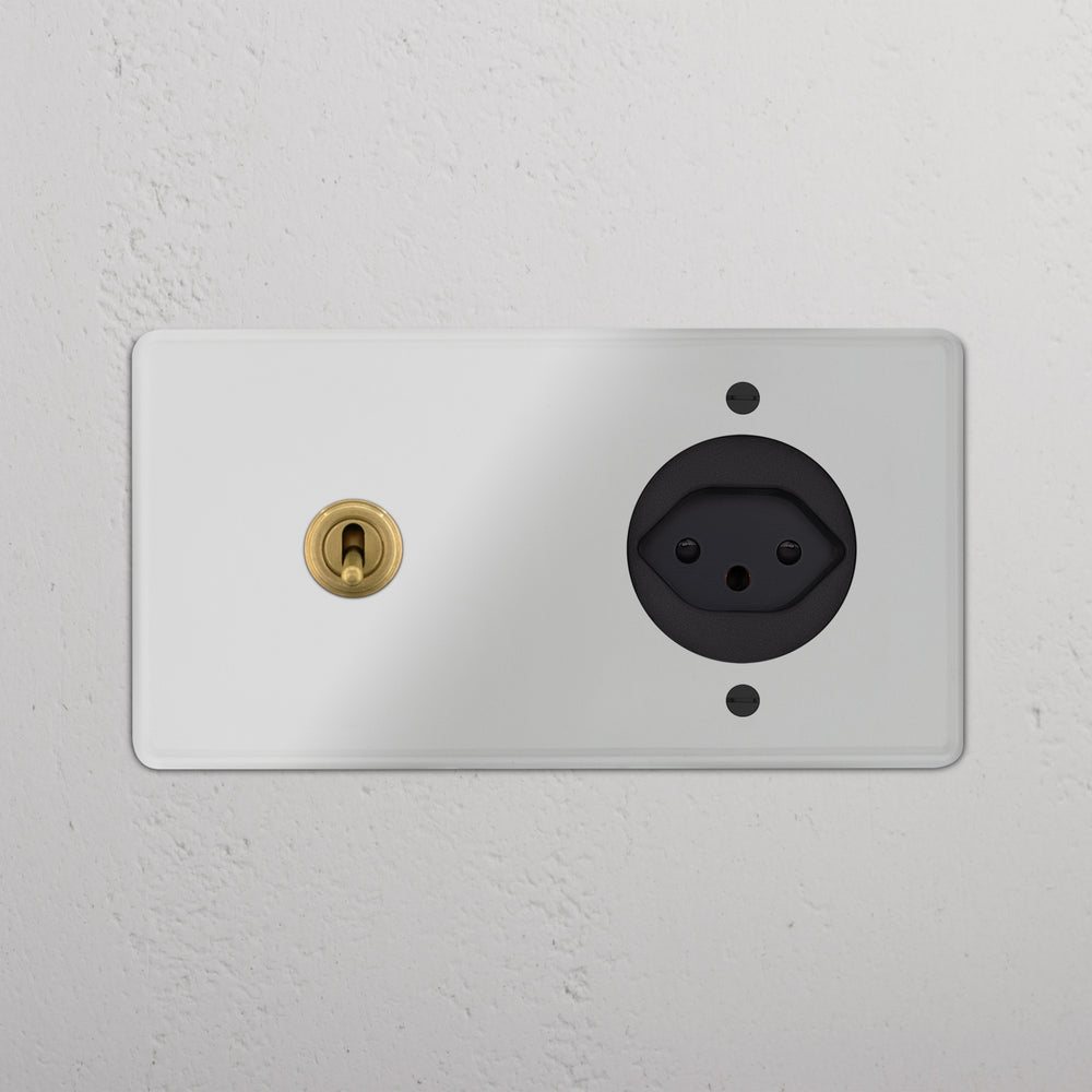 This double mixed switch and socket combines a two-way toggle switch and Swiss socket on one plate.