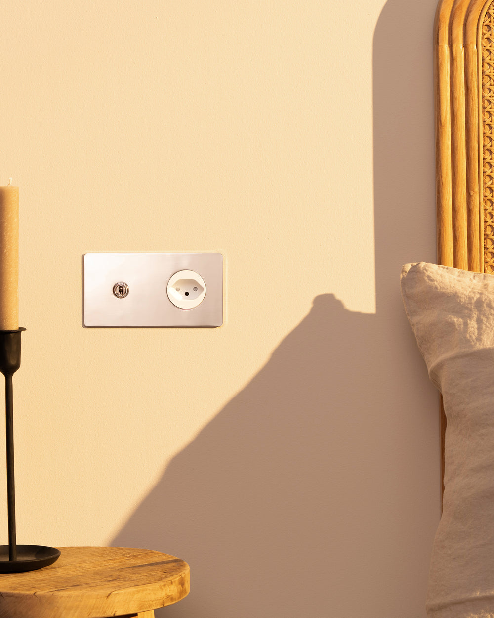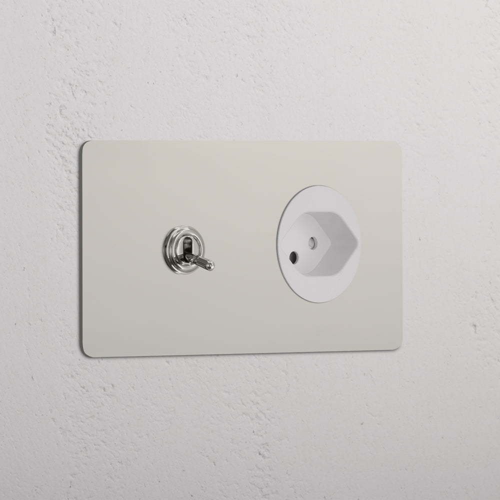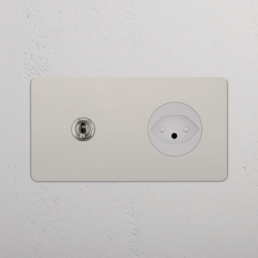 This double mixed switch and socket combines a two-way toggle switch and Swiss socket on one plate.