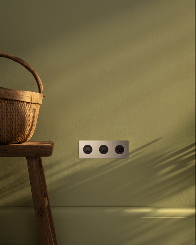 Our triple 3x Swiss socket is crafted to be as sleek and timeless as possible in any interior setting.