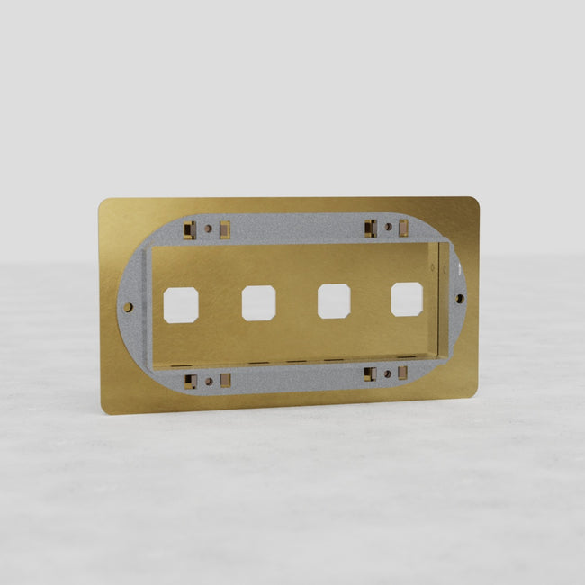 This Kew double 4x switch plate in antique brass works with any four of our antique brass toggle switches. If you’d like to add a rotary dimmer switch, you’ll need to use our double 2x switch plate.