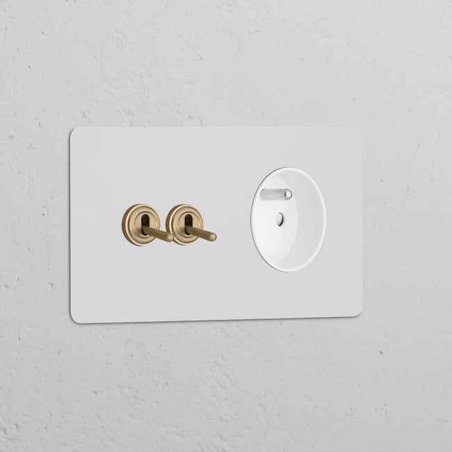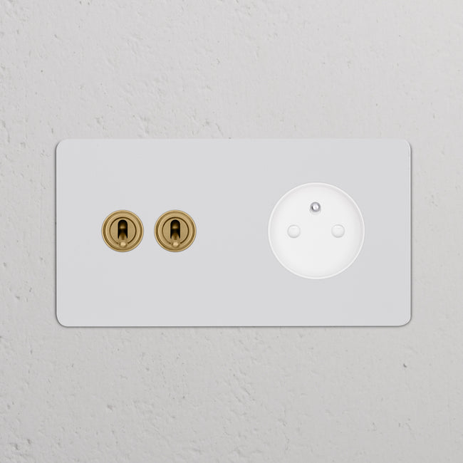 This double mixed switch and socket combines two two-way toggle switches and a French/Belgian socket on one plate.
