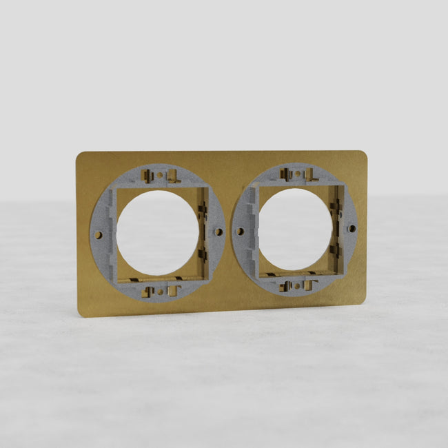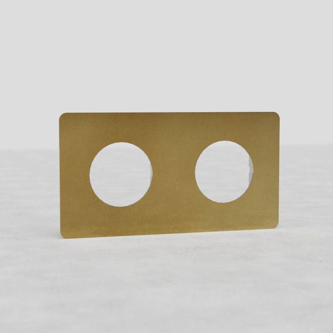 This Kew double socket plate in antique brass works with any two of our round socket modules.