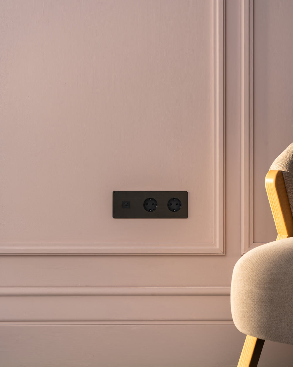 This triple mixed socket combines a USB-C and two Schuko sockets on one plate.