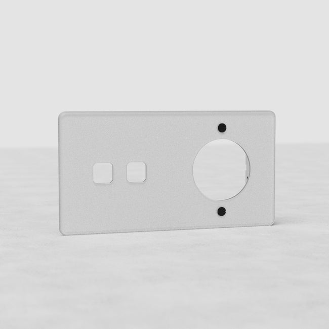 This Kew clear double 2x switch and 1x socket plate works with any two of our toggle switches and any one of our round socket modules (just make sure you choose the ones made with black plastic).