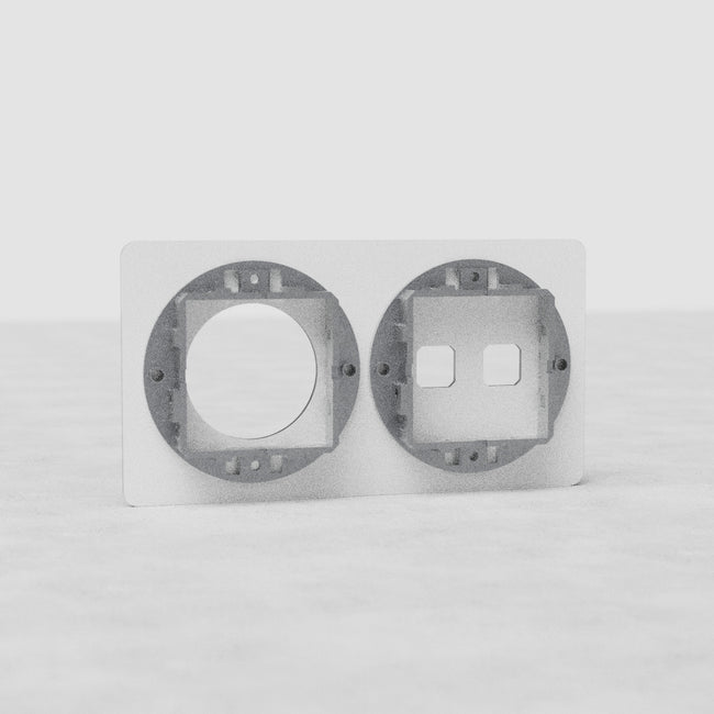 This Kew clear double 2x switch and 1x socket plate works with any two of our toggle switches and any one of our round socket modules (just make sure you choose the ones made with white plastic).