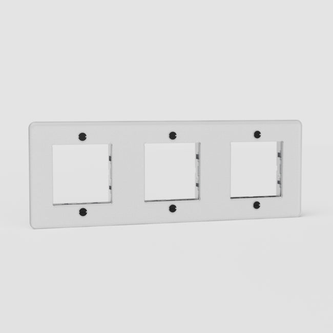 This Kew clear triple 45mm module plate works with any three of our rocker switches or our 45mm socket modules (just make sure you choose the ones made with black plastic).