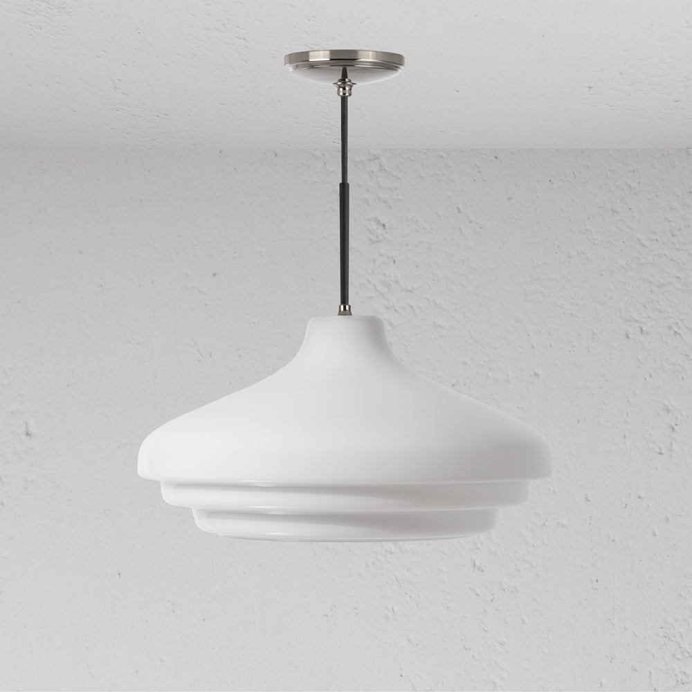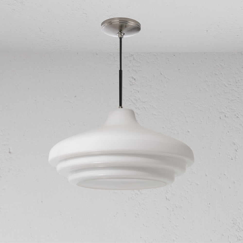 Our Brookfield pendant has an elegantly curved, three-tiered shade and a solid brass bulb holder. It’ll make a subtle statement without outshining other design features in your space.