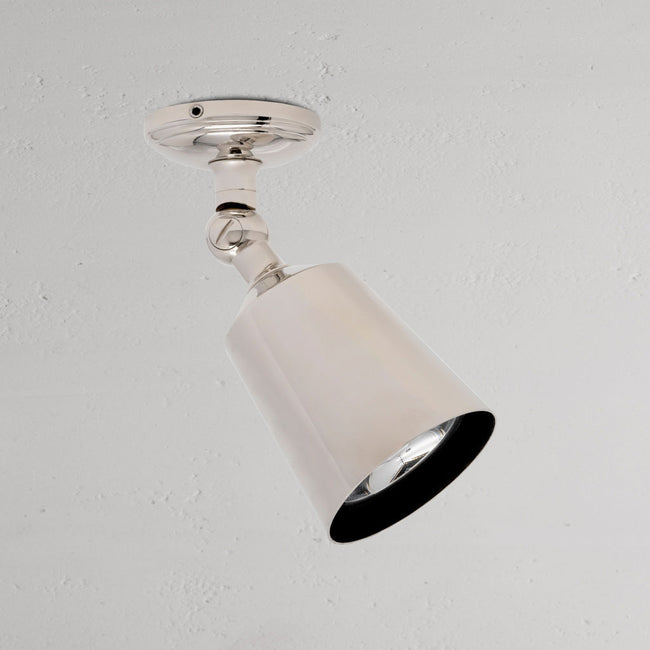 The Baylis single ceiling spotlight sits neatly with a small rose and discreetly set screws.