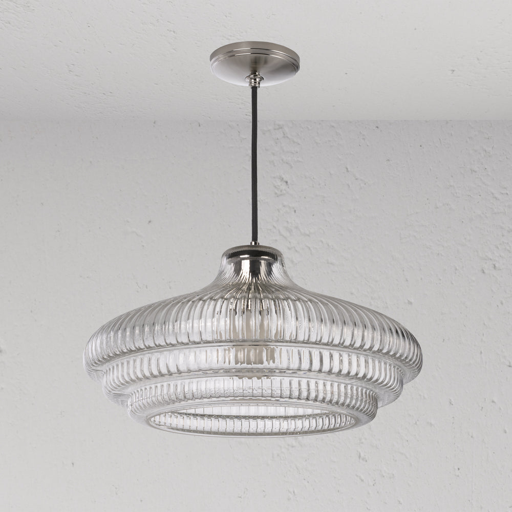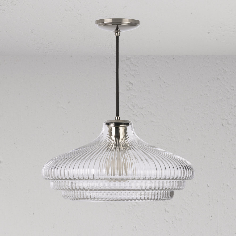 Our Brookfield pendant has an elegantly curved, three-tiered shade and a solid brass bulb holder. It’ll make a subtle statement without outshining other design features in your space.