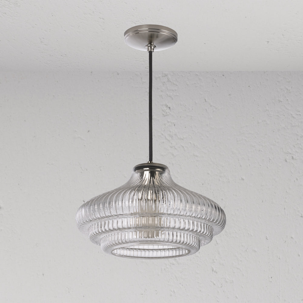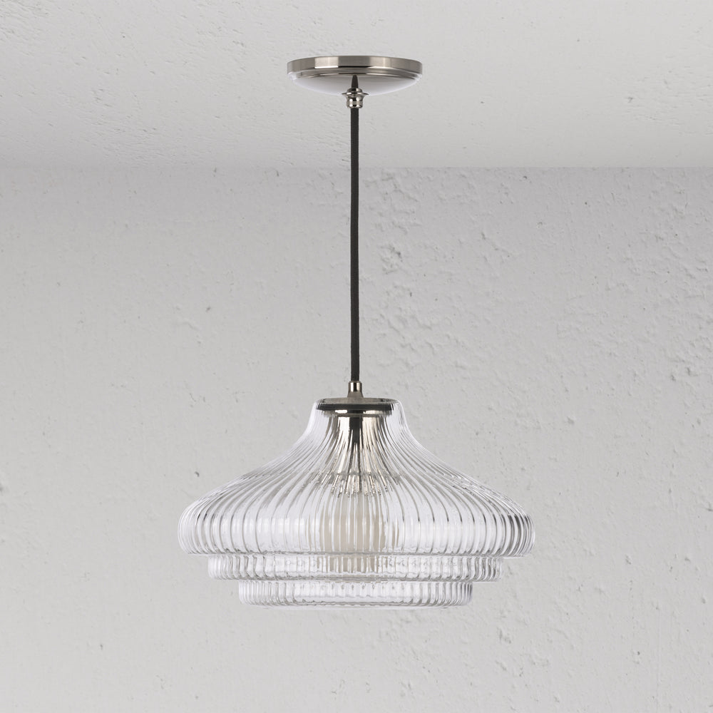 Our Brookfield pendant has an elegantly curved, three-tiered shade and a solid brass bulb holder. It’ll make a subtle statement without outshining other design features in your space.