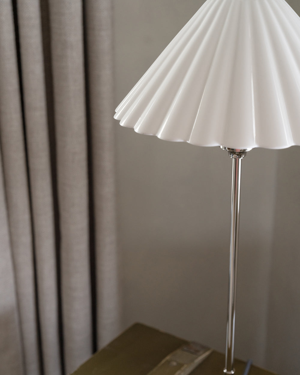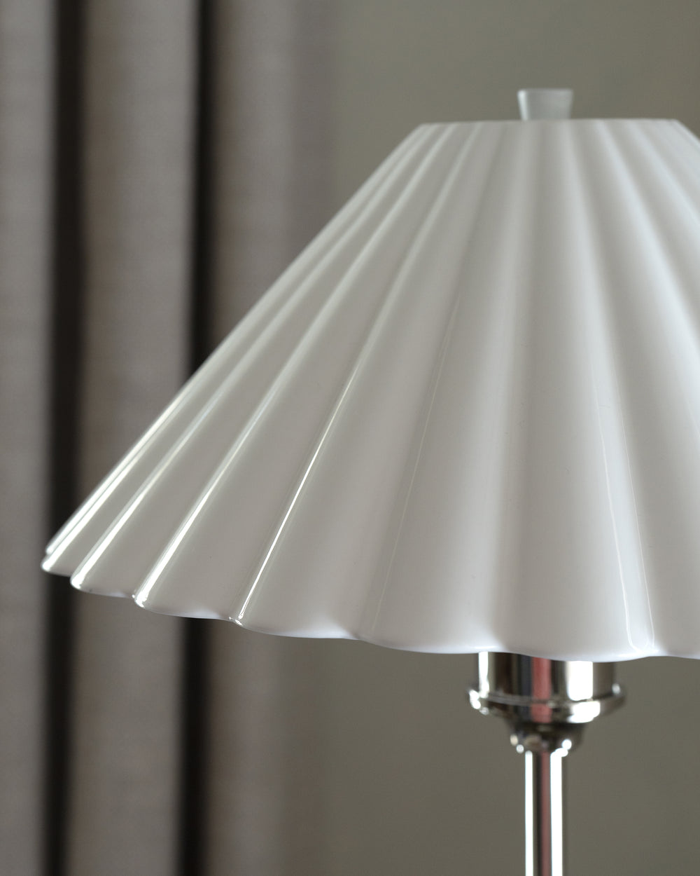The gently scalloped fine porcelain shade provides a warm, atmospheric glow with absolutely no glare. We’ve opted for a very subtle scallop that won’t go out of style.