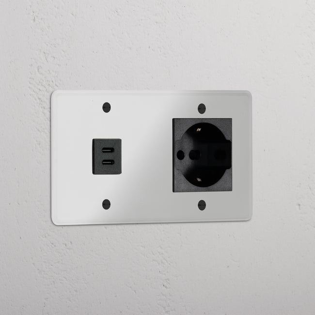 This double mixed socket combines a USB-C and Schuko/Bipasso socket on one plate.