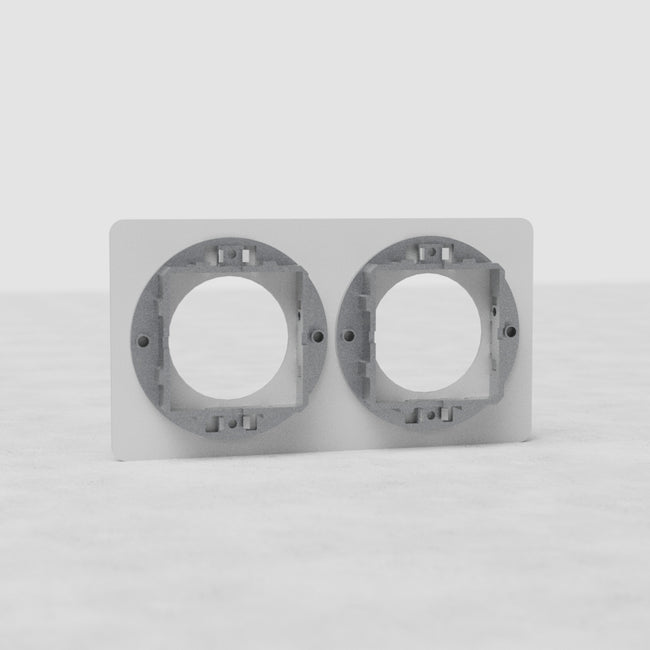 This Kew paintable double socket plate works with any two of our round socket modules.