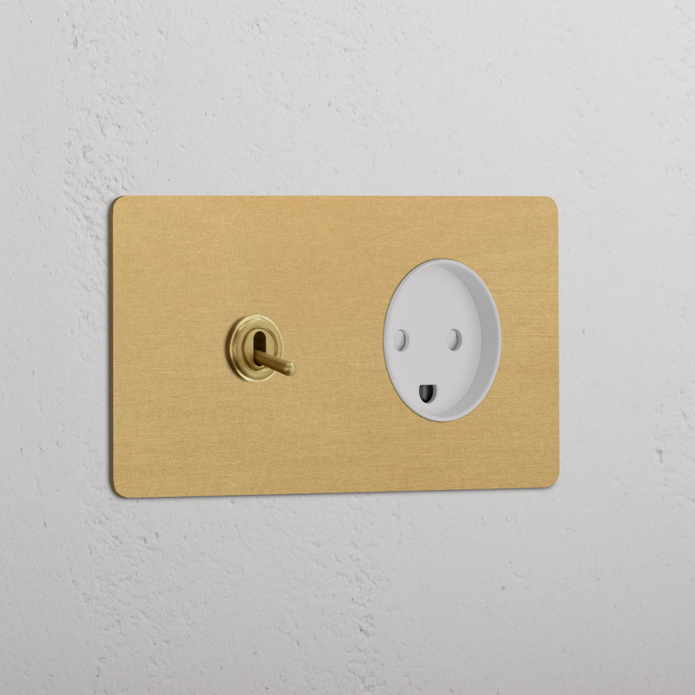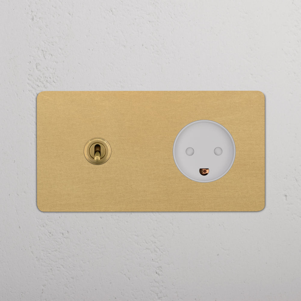 This double mixed switch and socket combines two two-way toggle switches and a Danish socket on one plate.