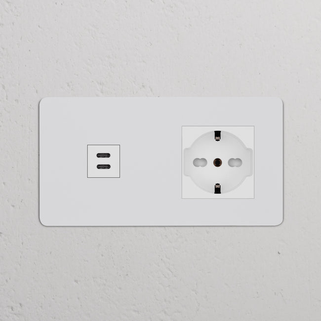 This double mixed socket combines a USB-C and Schuko/Bipasso socket on one plate.