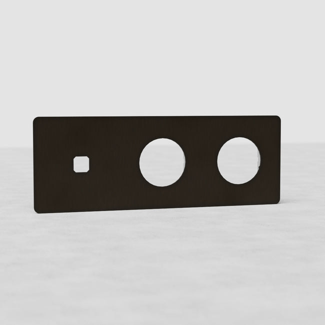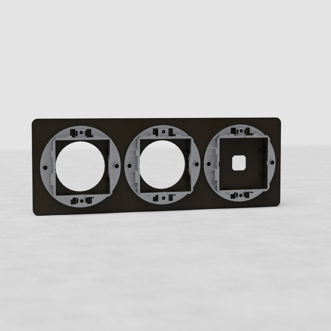 This Kew triple 1x switch and 2x socket plate in bronze works with any one of our bronze toggle or rotary dimmer switches and any two of our round socket modules (just make sure you choose the ones made with black plastic).