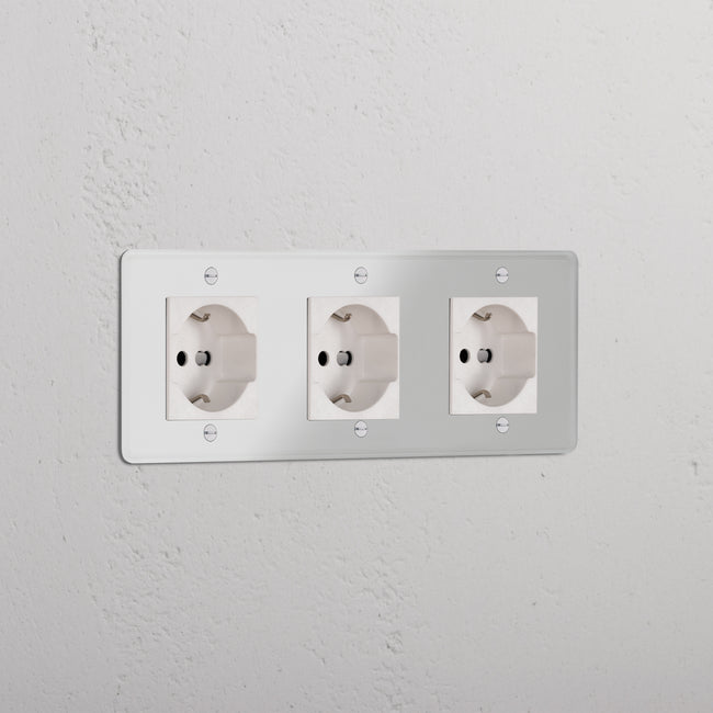 Our triple 3x Schuko/Bipasso socket is crafted to be as sleek and timeless as possible in any interior setting.