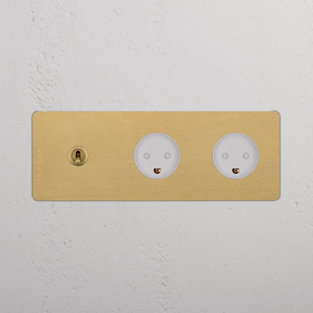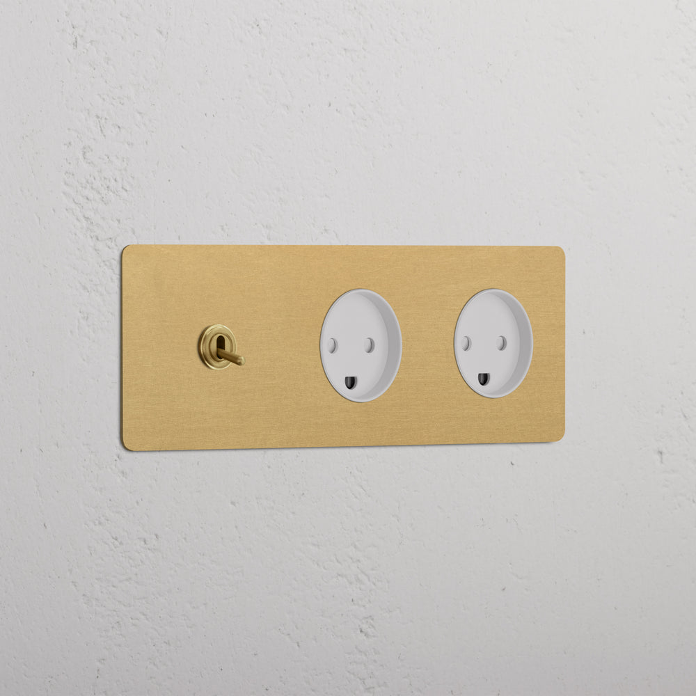 This triple mixed switch and socket combines a two-way toggle switch and two Danish sockets on one plate.