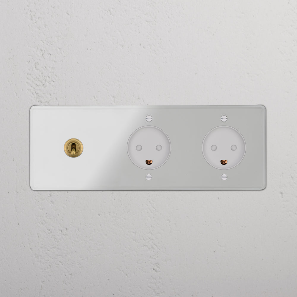 This triple mixed switch and socket combines a two-way toggle switch and two Danish sockets on one plate.