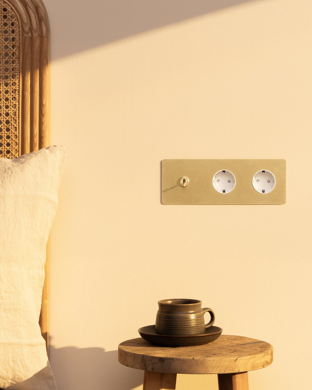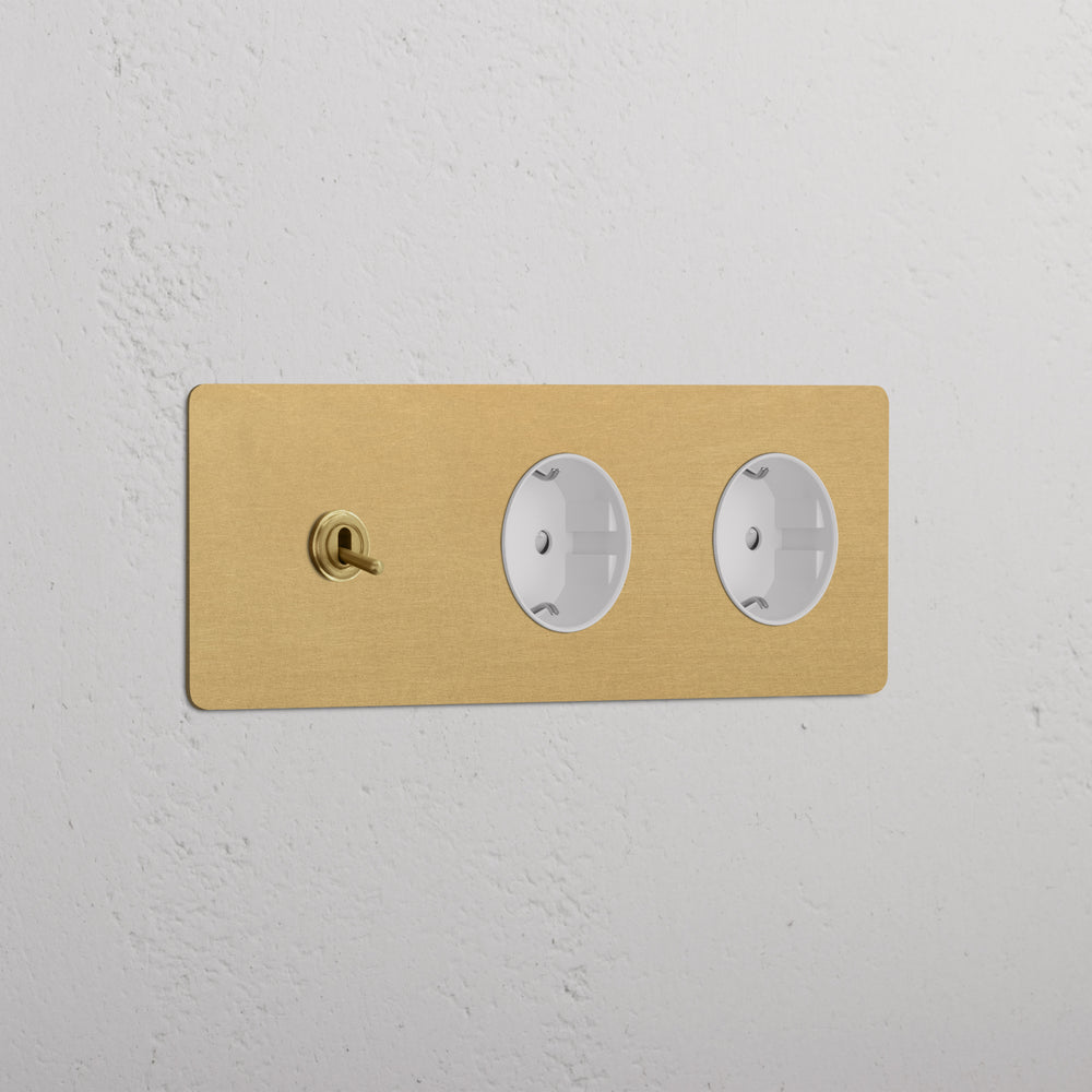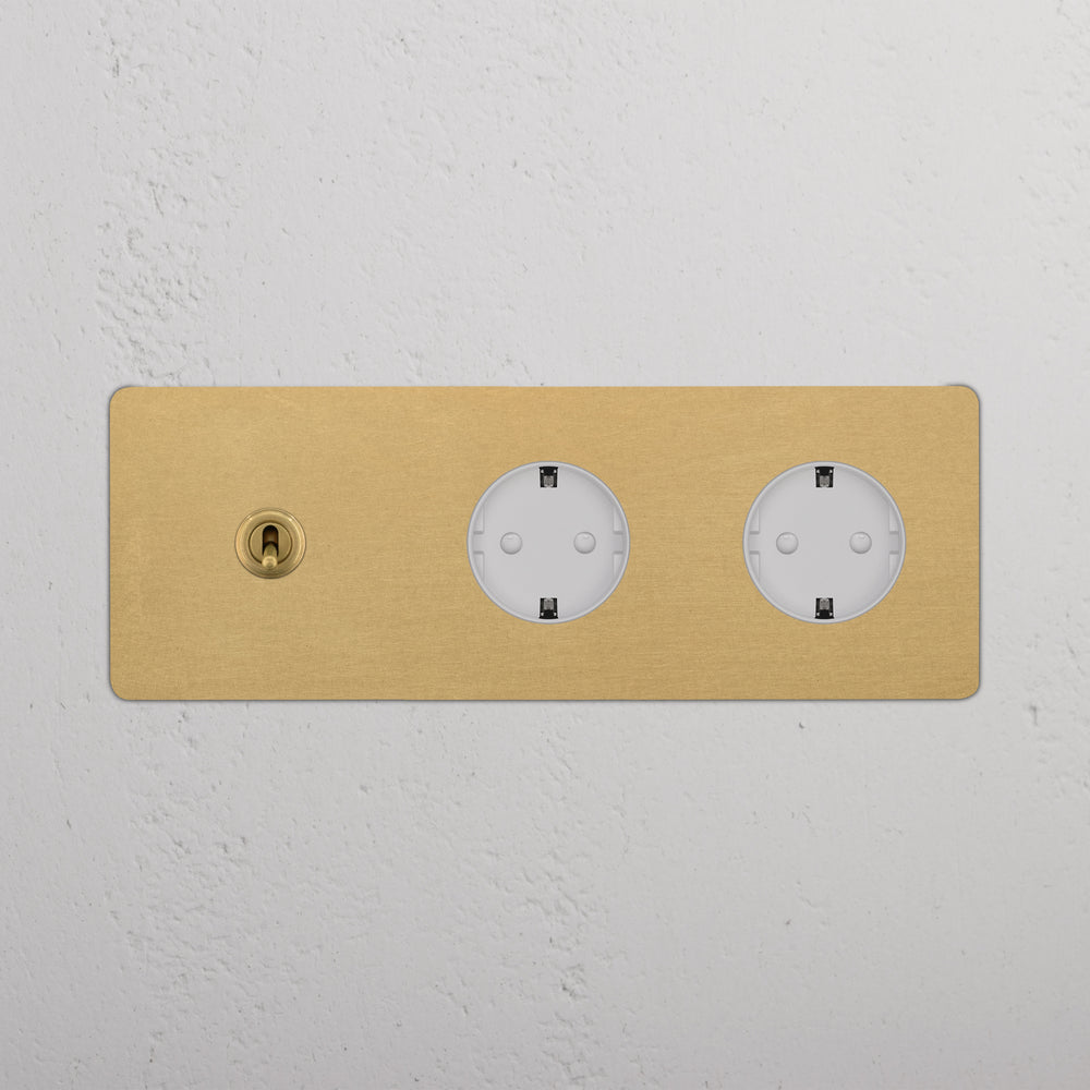 This triple mixed switch and socket combines a two-way toggle switch and two Schuko sockets on one plate.