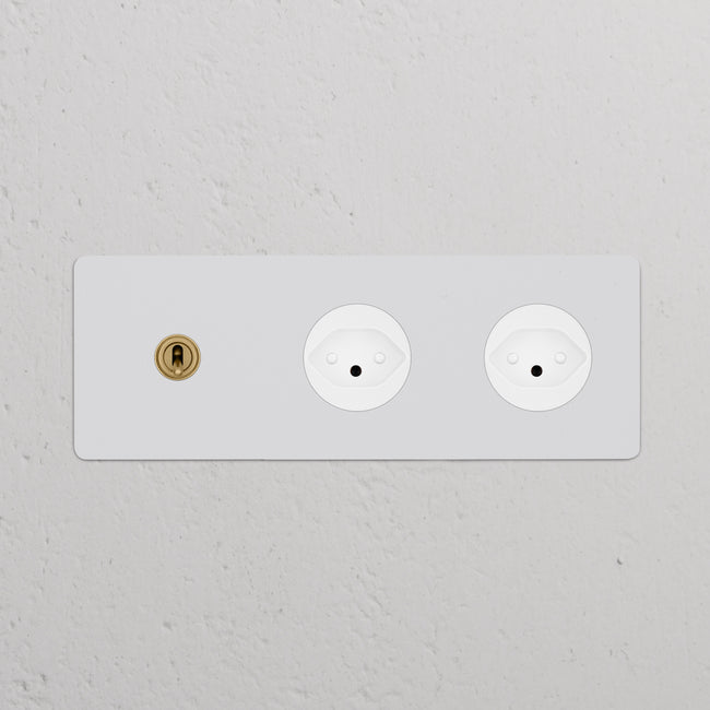 This triple mixed switch and socket combines a two-way toggle switch and two Swiss sockets on one plate.