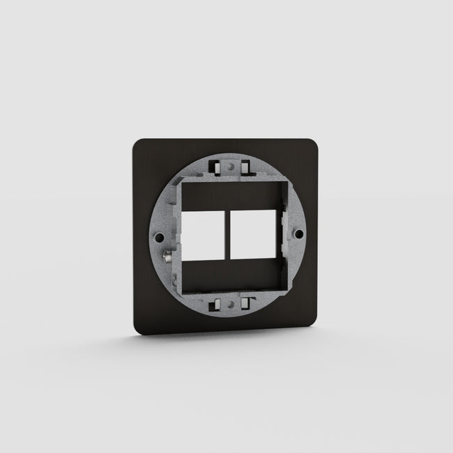 This Kew single 2x keystone module plate in bronze works with any two of our 20mm keystone modules, except our USB-C module (just make sure you choose the ones made with black plastic). Our USB module is bigger than our other keystone modules and two won’t fit next to each other on this plate. You can use our double 2x keystone plate instead.