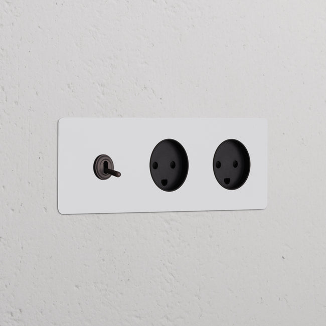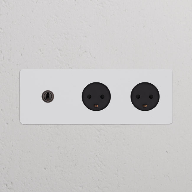 This triple mixed switch and socket combines a two-way toggle switch and two Danish sockets on one plate.