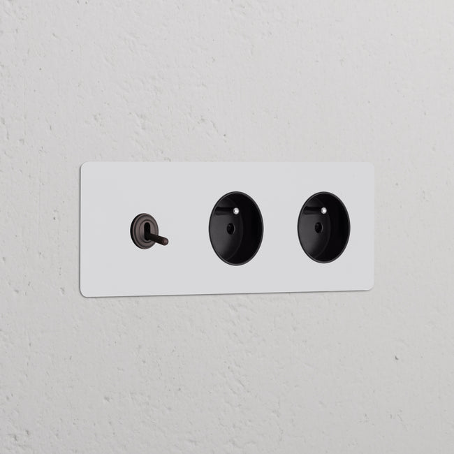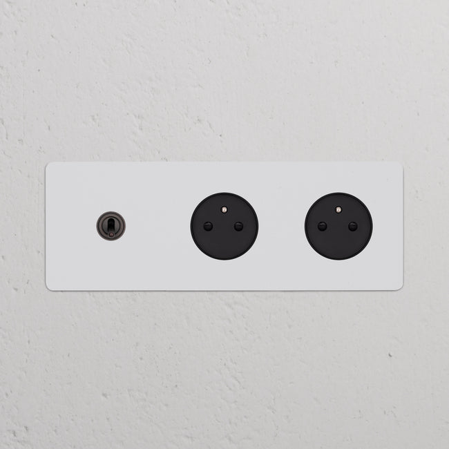 This triple mixed switch and socket combines a two-way toggle switch and two French/Belgian sockets on one plate.