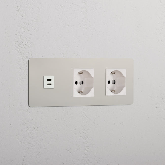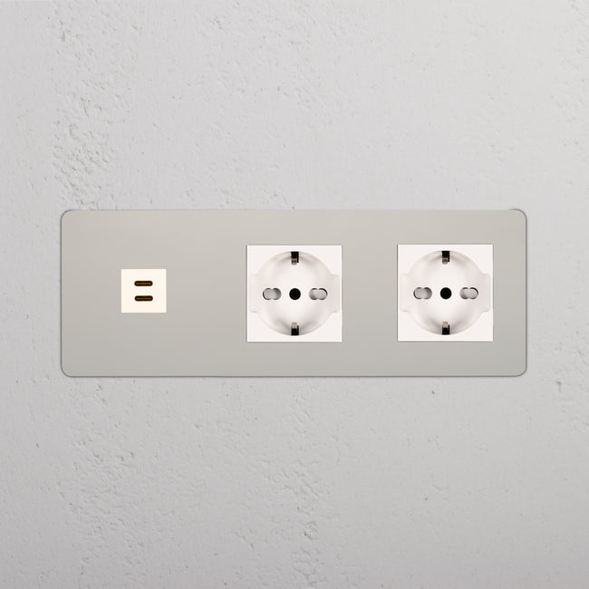 Este enchufe mixto en marco triple combina un USB-C y dos enchufes Schuko/Bipasso en un solo marco.