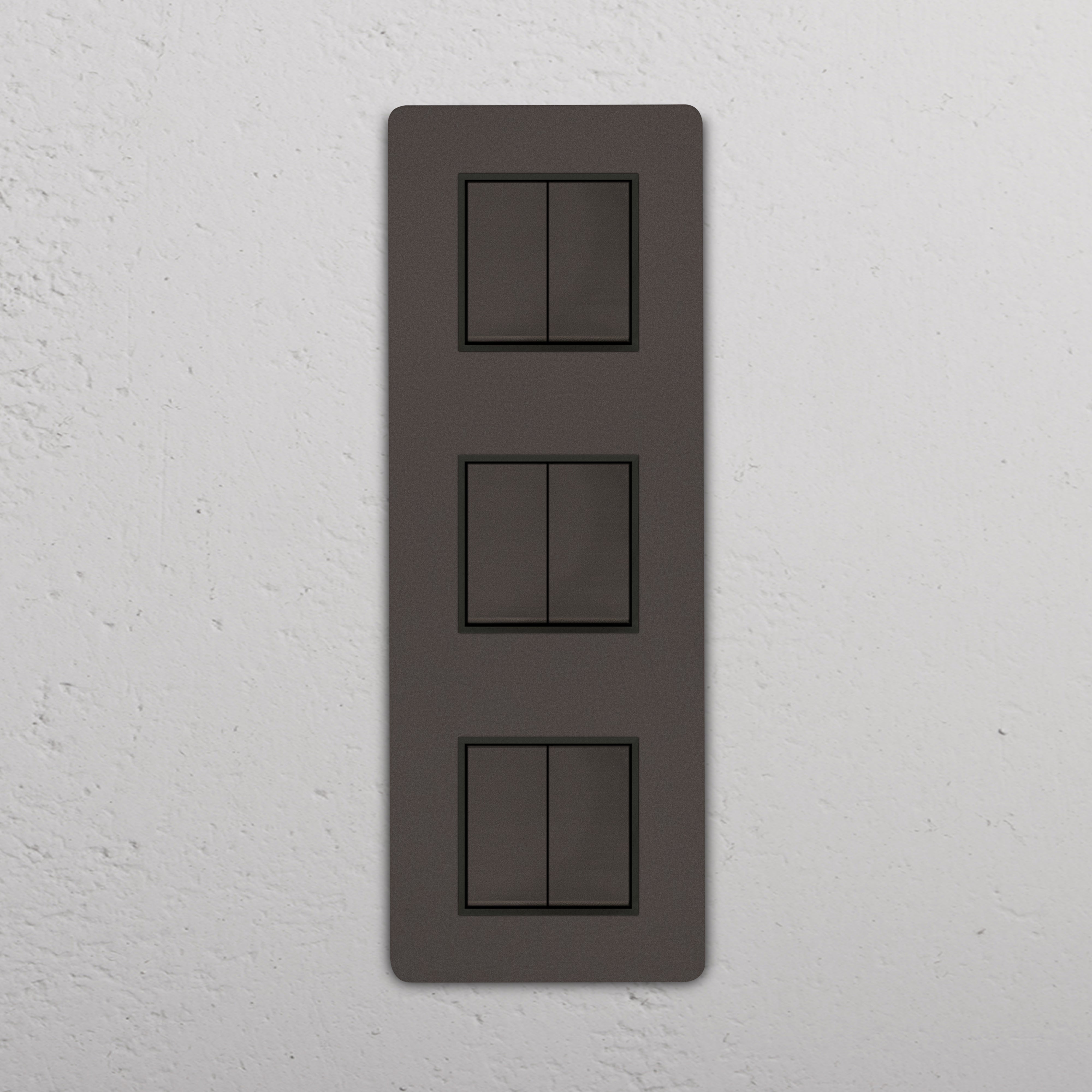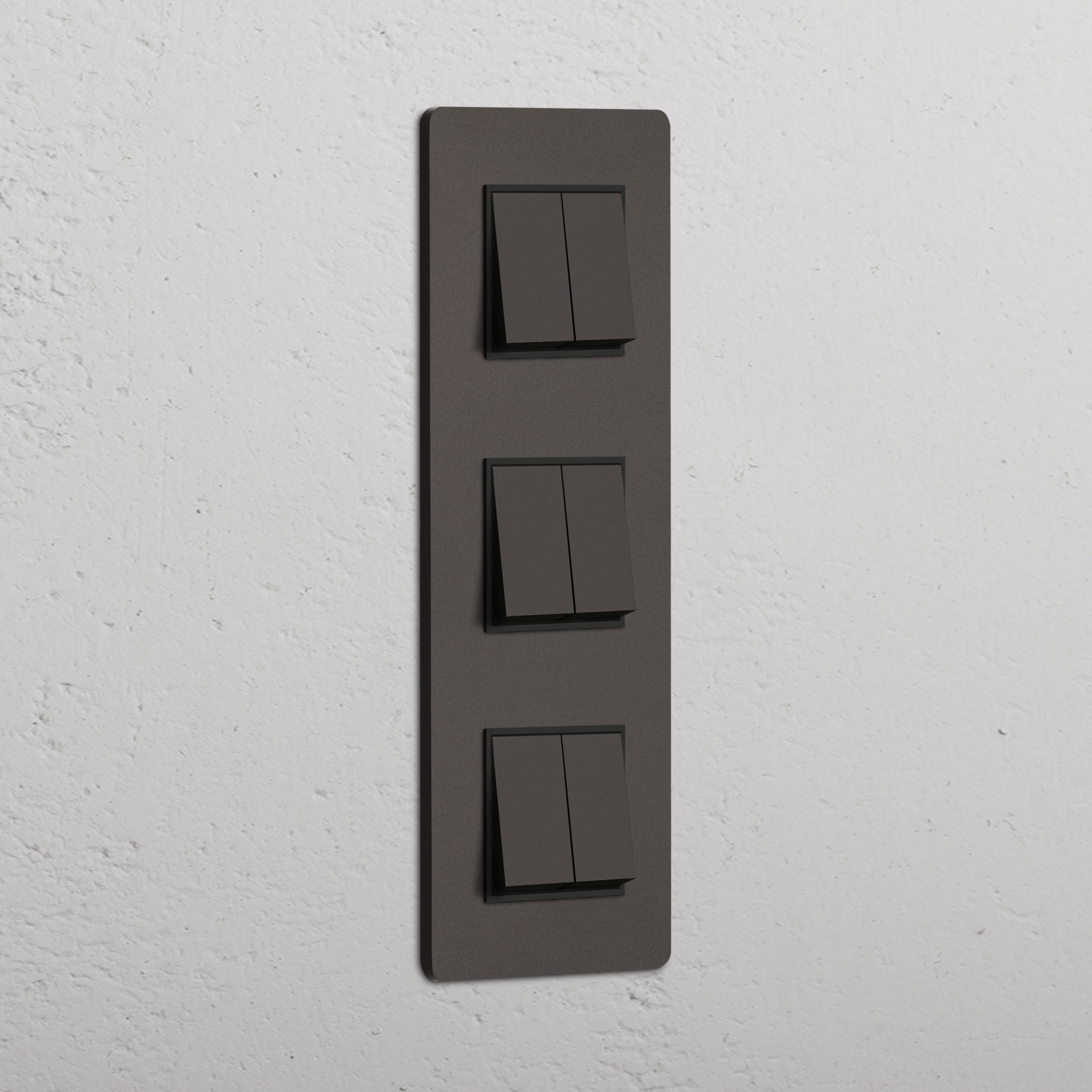 Notre interrupteur carré vertical x6 va-et-vient sur plaque triple est conçu pour être aussi élégant et intemporel que possible, dans n'importe quel intérieur.