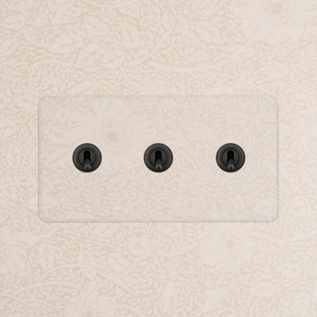 Cet interrupteur va et vient à levier x3 sur plaque double ne fait que 2 mm d'épaisseur et possède une face sans vis, de sorte qu'il est pratiquement invisible sur le mur.