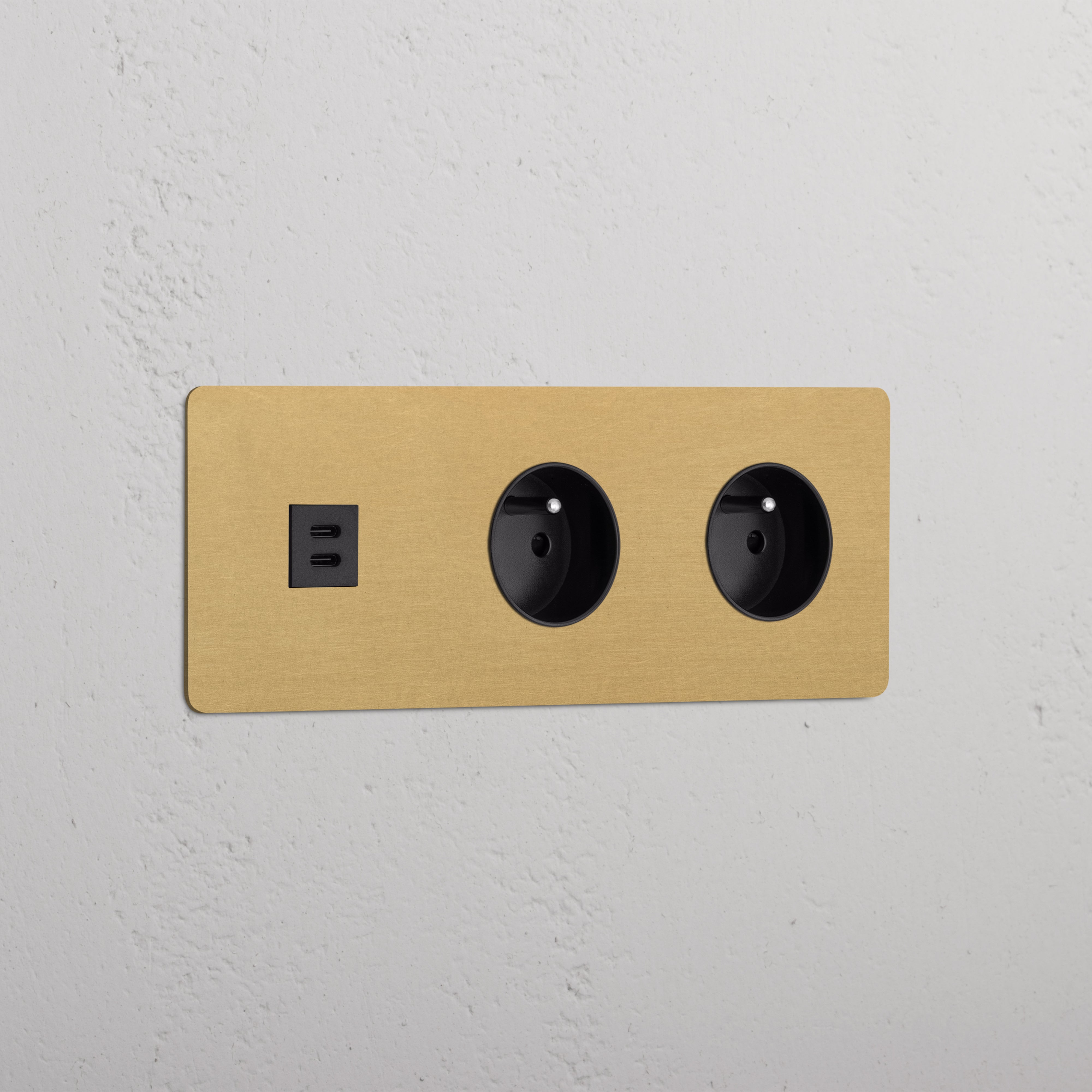 Kew Prise USB-C 30 W & Prise France/Belgique Type E x2 (Plaque Triple)