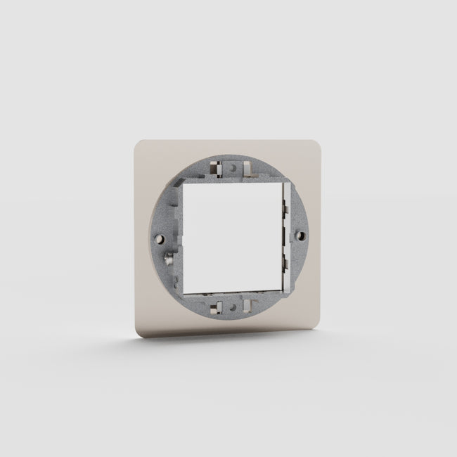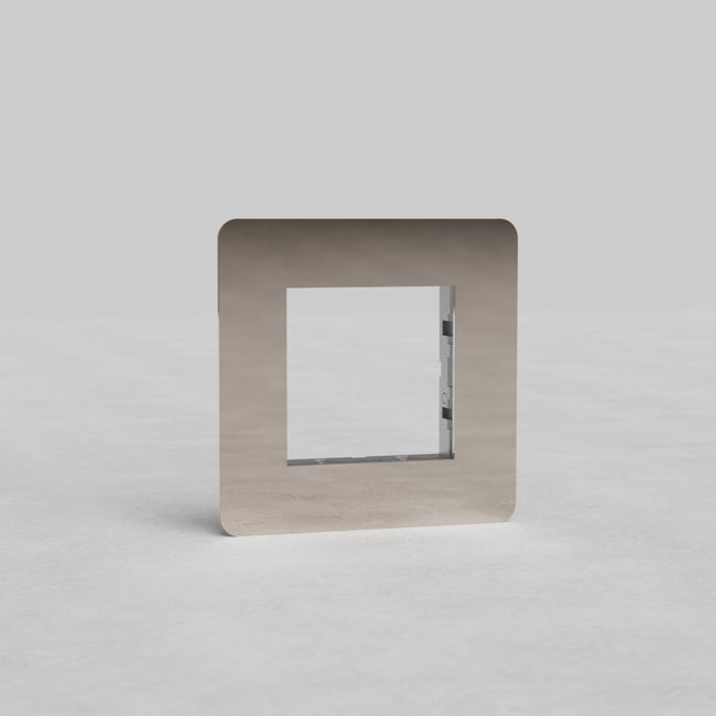 Cette plaque simple d'insert 45 mm Kew en nickel poli est compatible avec n'importe lequel de nos interrupteurs carrés en nickel poli ou de nos mécanismes de 45 mm pour prise.