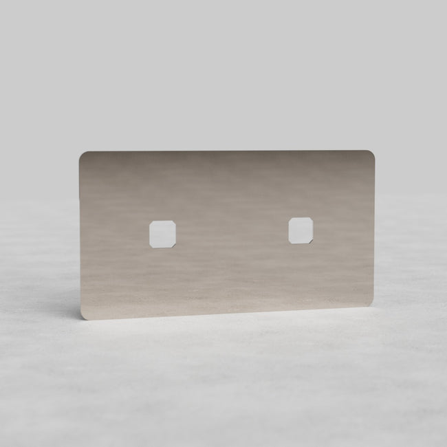 Cette plaque d'insert interrupteur x2 double Kew en nickel poli est compatible avec n'importe quelle combinaison de deux de nos interrupteurs à levier ou variateurs rotatifs en nickel poli.