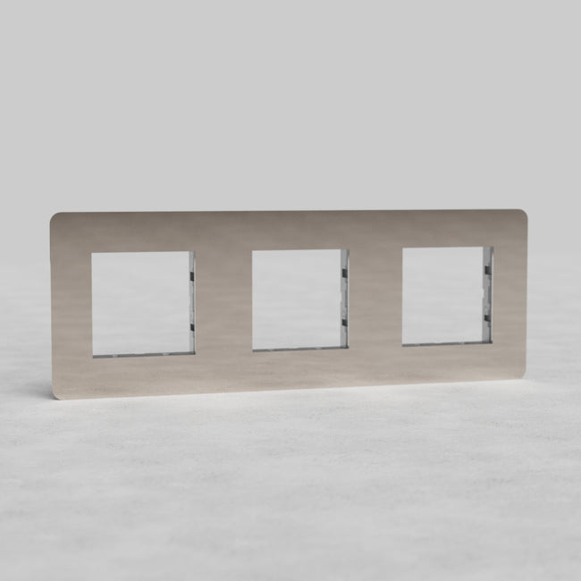Cette plaque triple d'insert 45 mm Kew en nickel poli est compatible avec n'importe quelle combinaison de trois de nos interrupteurs carrés en nickel poli ou de nos mécanismes de 45 mm pour prise.