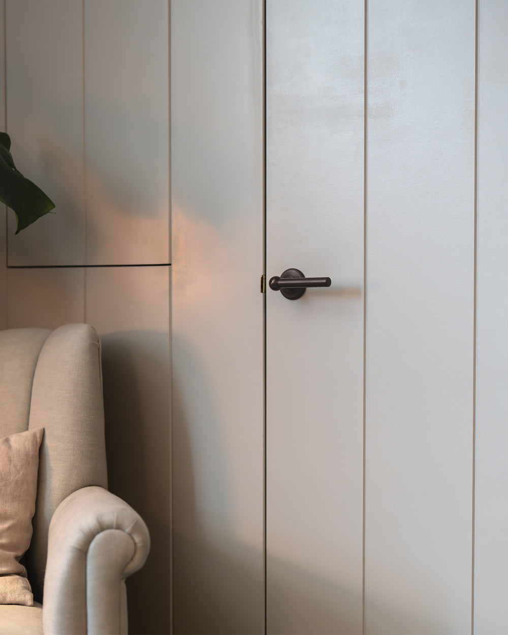 Le Bronze est notre finition la plus audacieuse, mais elle n'est ni brillante ni vive, ce qui lui confère également un côté discret. Il s'agit d'une couleur mate d'un brun profond, presque noire sous certaines lumières.