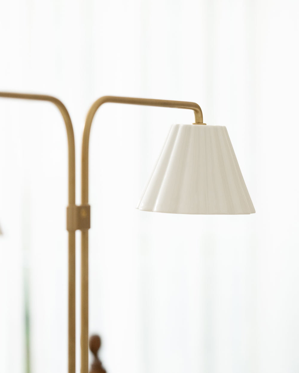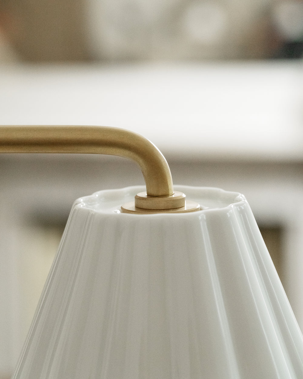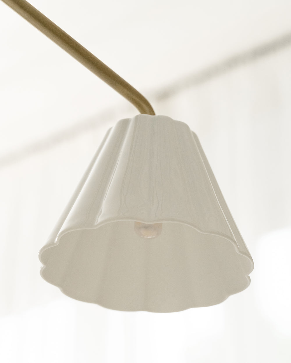Les abat-jours en porcelaine fine légèrement festonnée diffusent une lumière d'ambiance chaleureuse sans aucun éblouissement. Nous avons opté pour un feston très subtil qui ne se démodera pas.