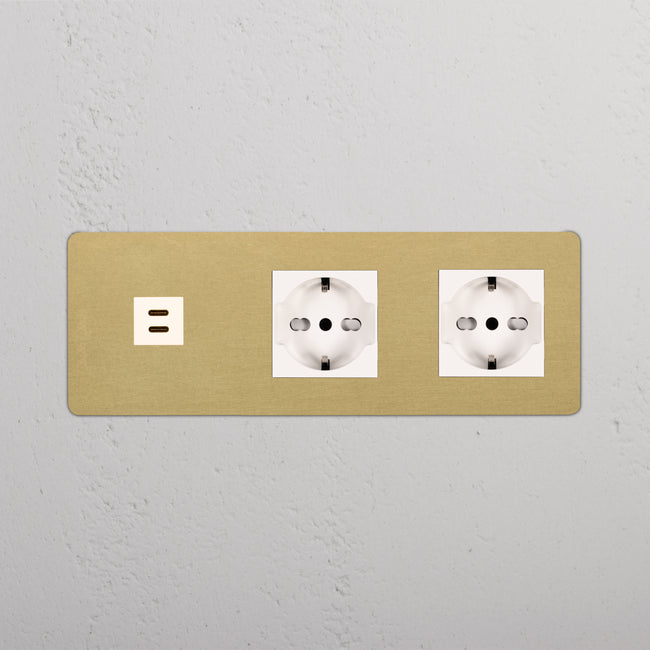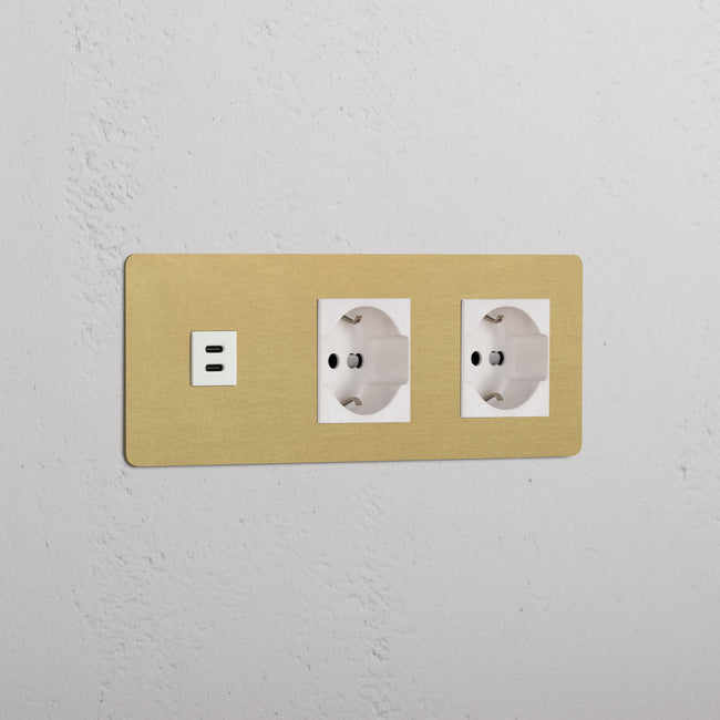 Kew Prise USB-C 30 W & Schuko/Bipasso x2 (Plaque Triple)