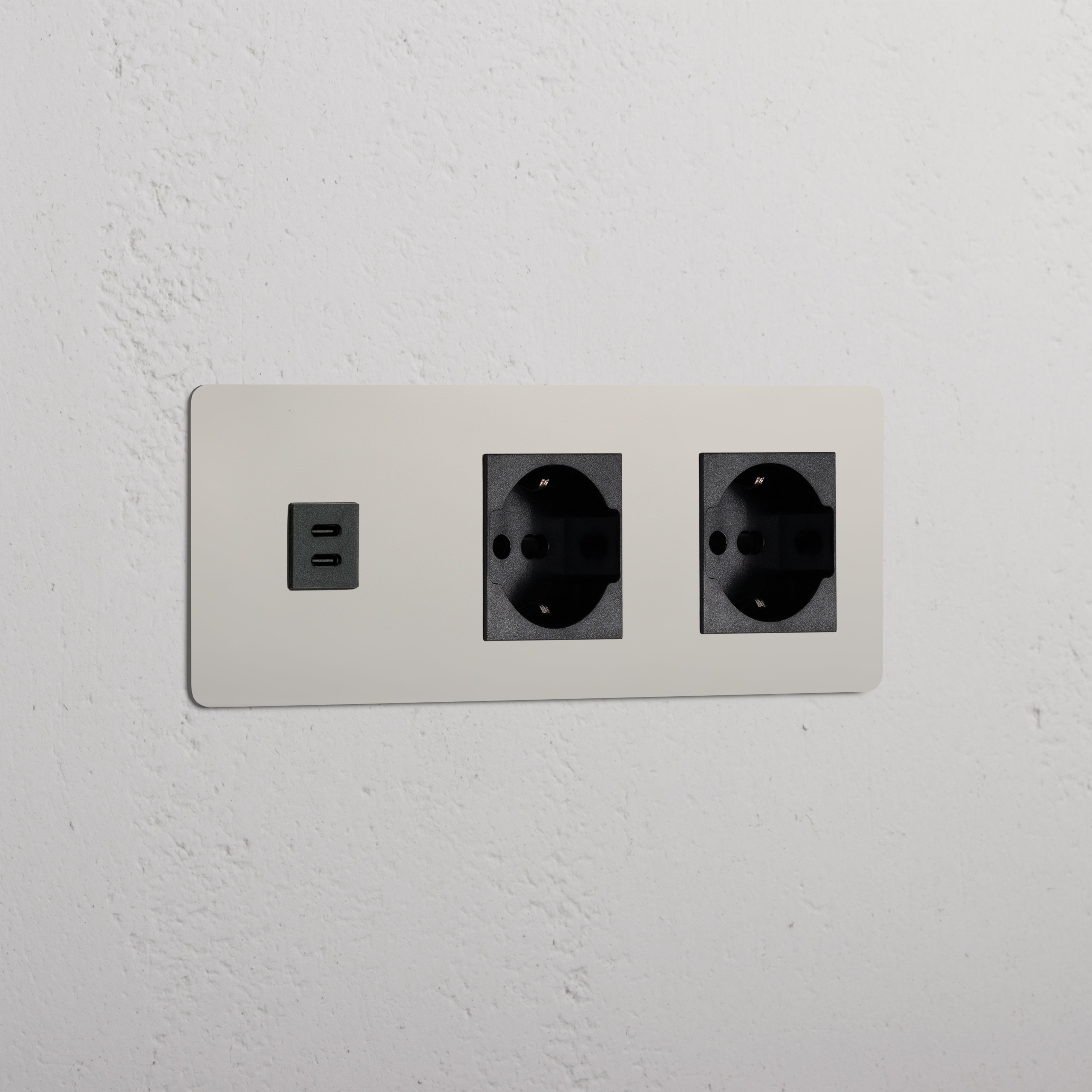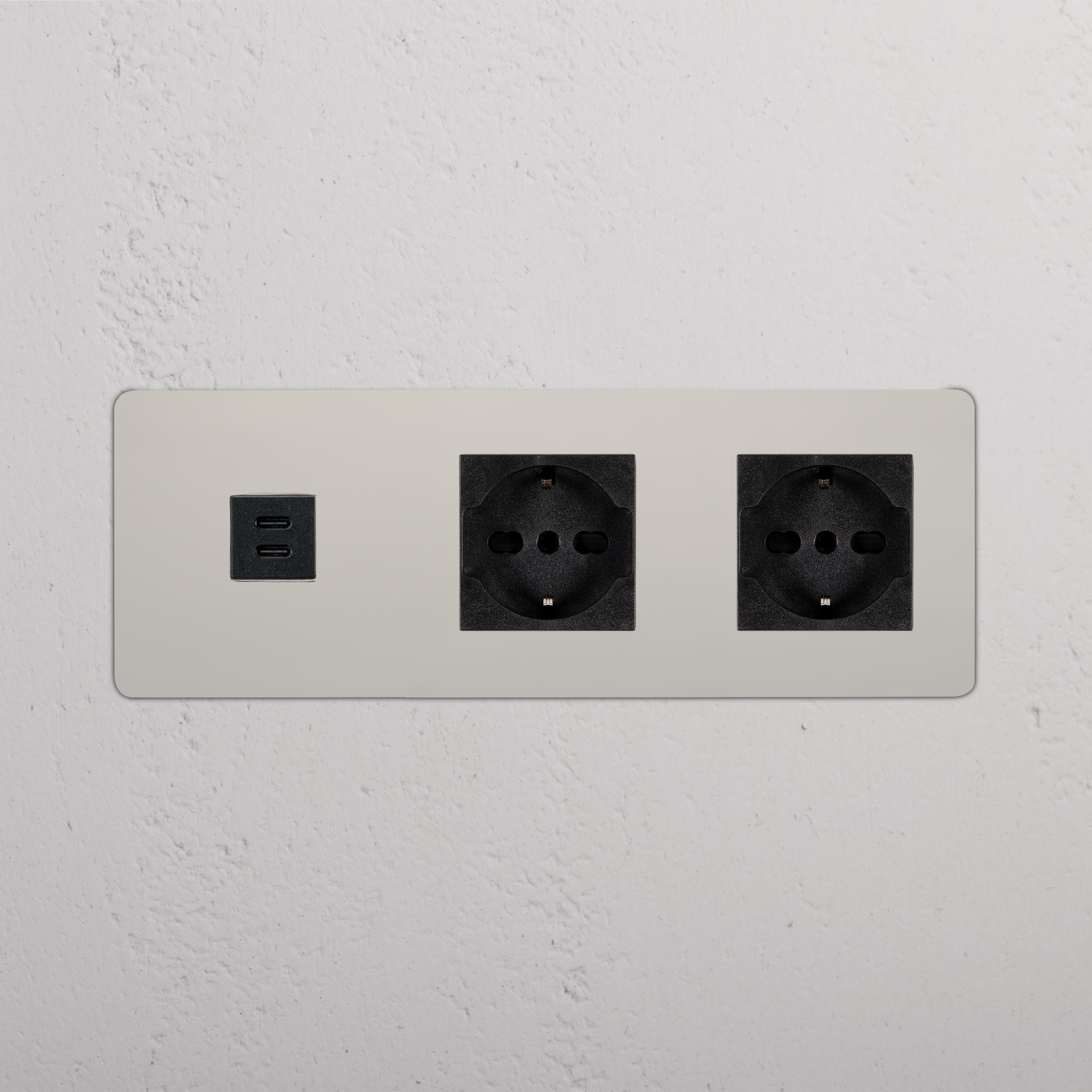 Kew Prise USB-C 30 W & Schuko/Bipasso x2 (Plaque Triple)