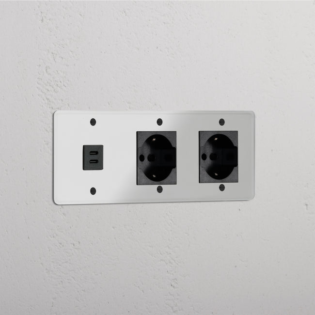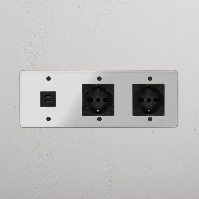 Kew Prise USB-C 30 W & Schuko/Bipasso x2 (Plaque Triple)