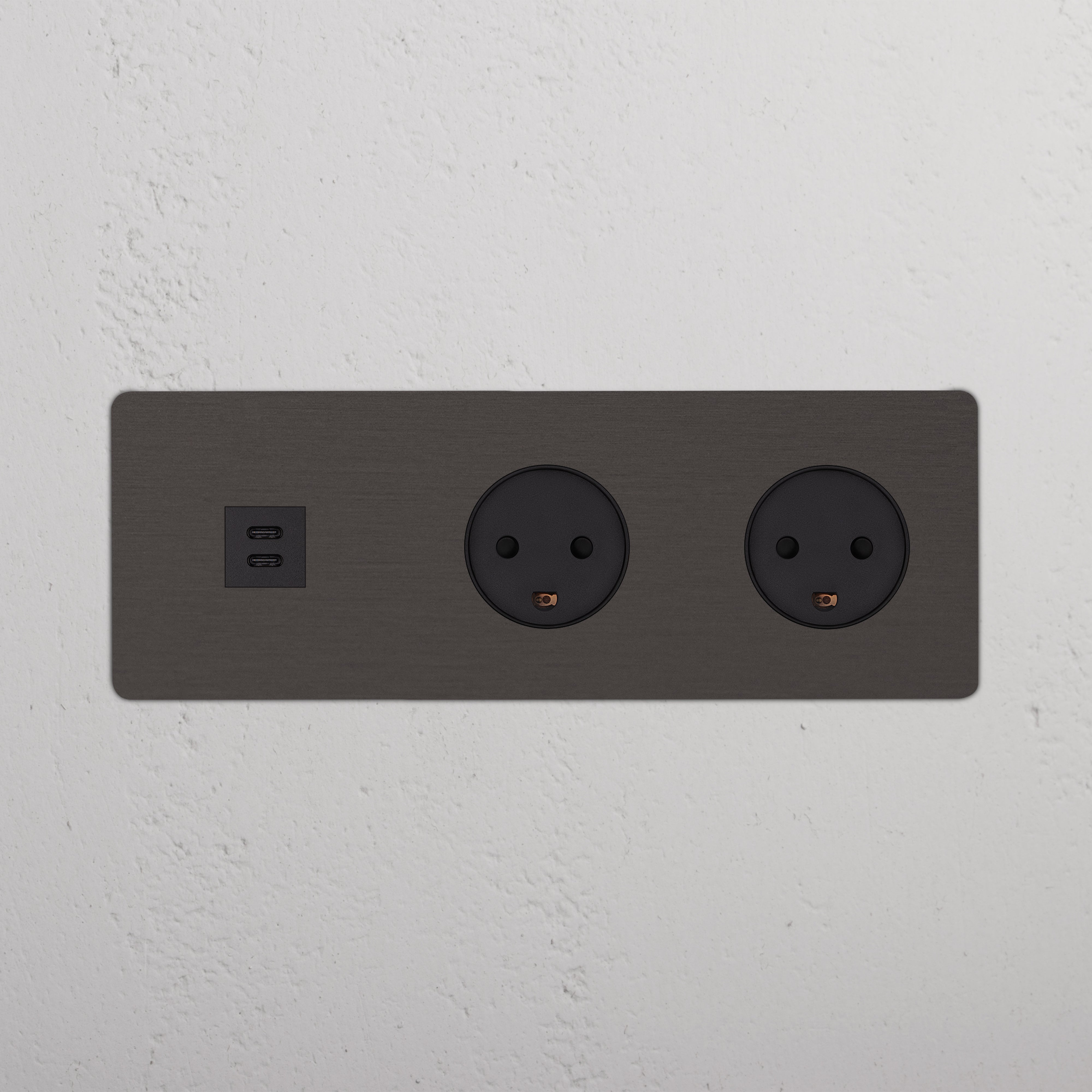 Cette prise mixte sur plaque triple combine une prise USB-C et deux prises Danemark sur une même plaque.